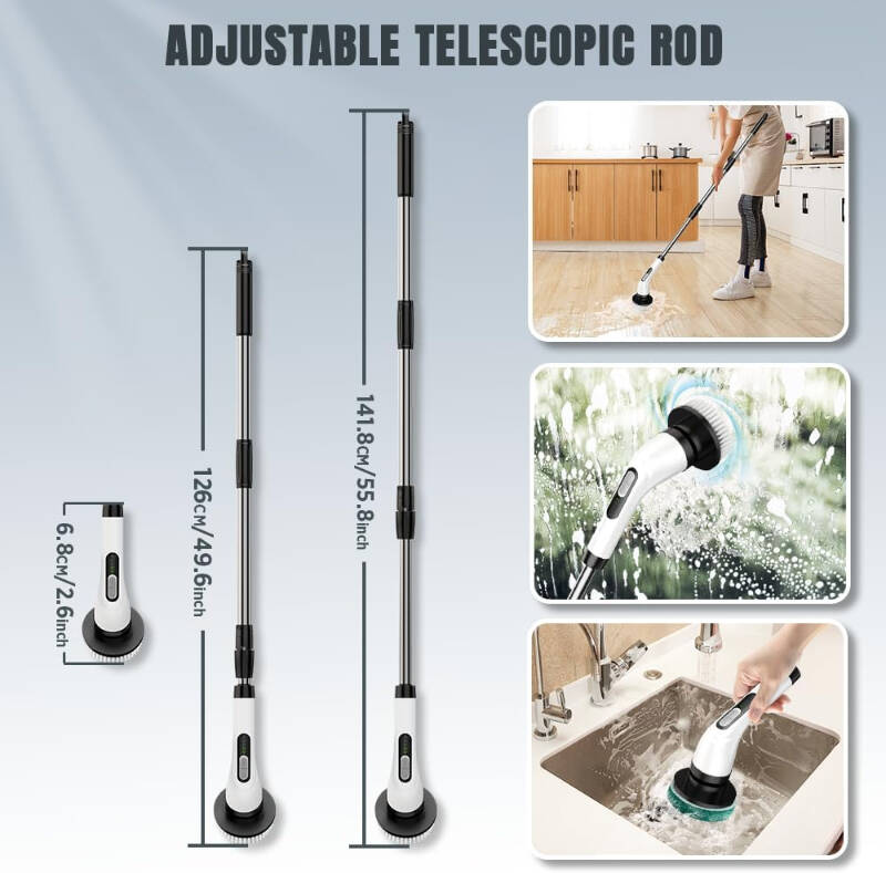 7 in 1 kablosuz elektrikli temizlik fırçası seti, ev ve araç temizliğinde maksimum konfor sunar. Uzatılabilir teleskopik sapı sayesinde 68 cm’den 141 cm’ye kadar ayarlanabilir ve yüksek veya ulaşılması zor alanlarda kolay temizlik sağlar. Güçlü döner motoru ile sabun, kir ve yağ kalıntılarını hızlı bir şekilde temizler. Farklı yüzeyler için özel olarak tasarlanmış 7 adet fırça ve sünger başlık içerir; lavabo, banyo, fayans, mutfak tezgahı, cam, araba yüzeyleri ve zeminlerde mükemmel sonuç verir. Ergonomik ve suya dayanıklı gövdesiyle uzun süreli kullanım sağlar. Kablosuz ve şarjlı yapısı sayesinde pratik kullanım sunar, kablo karmaşası olmadan temizlik yapılabilir. Şarj edilebilir bataryası ile tek şarjda uzun süre kesintisiz temizlik imkânı sağlar.