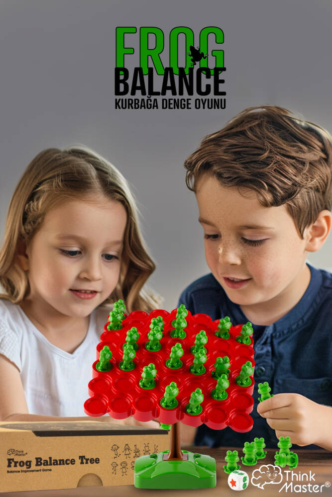 Kurbağa denge ebeveyn çocuk etkileşimi oyunu eğitici oyuncak kutu oyunu ; 49 adet kurbağa ; 1 adet oyun zarı ; 1 adet gövde ; 1 adet alt ayak ; 1 adet üst tabla olmak üzere toplam 53 parçadan oluşmaktadır. ; Çocuklar ilk öğrenmeye başladıklarında genellikle denge kurmakta zorlanırlar. Kurbağa denge oyunu çocukları eğiterek denge yeteneği kazanmalarını sağlamak amacıyla özel olarak geliştirilmiştir. Kurbağa Denge Oyunu çocuklara zar üzerinde bulunan kurbağa adedini denge tablasına yerleştirmek yoluyla matematik becerilerini geliştirir. Kurbağa Denge Oyunu tabla üzerinde kurbağa sayısı arttığında tablayı dengede tutabilmek için çocuklarda hassas hareket etme kabiliyeti, el-göz koordinasyonunu ve motor becerileri geliştirilmesine olanak sağlar. Kurbağa denge oyunu nasıl oynanır? Kurbağa Denge Oyunu kutusu içerisinde alt tabla, denge platformu, denge çubuğu, ve bir adet zar ve kurbağalar bulunmaktadır. ; Alt tabla üzerine denge çubuğunu takın daha sonra denge platformunu çubuğun üzerine yerleştirin. ; Her oyuncu sırası ile zar atar zar üzerinde bulunan kurbağa adeti kadar denge platform üzerine yerleştirir. ; Denge platformunu bozan ve ilk kurbağayı düşüren kaybeder. ; Zar üzerinde bir adet yıldız bulunmaktadır. ; Yıldız atan oyuncu kurbağa yerleştirmez ve diğer oyuncu tekrar yerleştirmek zorunda kalır. ;
